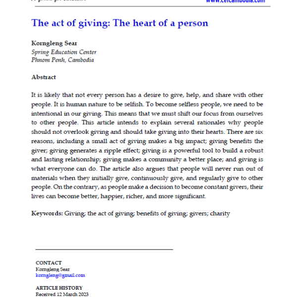 by CambodianEducationForum Posted on October 7, 2023 The act of giving: The heart of a person Read More