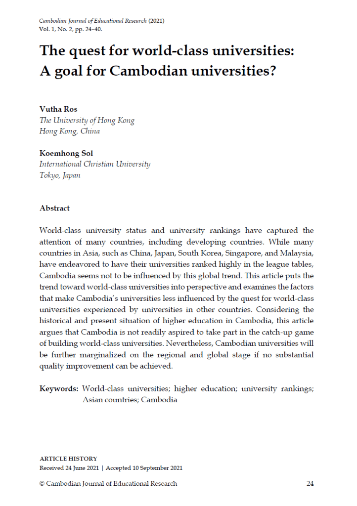 Keywords: World-class universities; higher education; university rankings; Asian countries; Cambodia