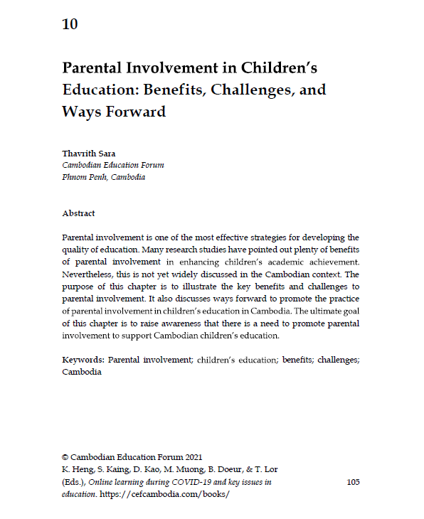 Neak, P. (2021, January 15). The role of parental and community participation in education amid the COVID-19 pandemic. Cambodian Education Forum. https://cefcambodia.com/2021/01/15/the-role-of-parental-and-community-participation-in-education-amid-the-covid-19-pandemic