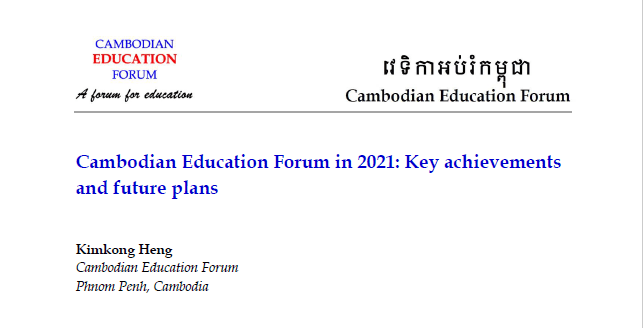 Heng, K. (2021a). The Cambodian Education Forum’s contribution to building a research culture in Cambodia. Cambodian Journal of Educational Research, 1(2), 1-5. https://cefcambodia.com/2021/12/30/the-cambodian-education-forumcontribution-to-building-a-researchculture-in-cambodia/