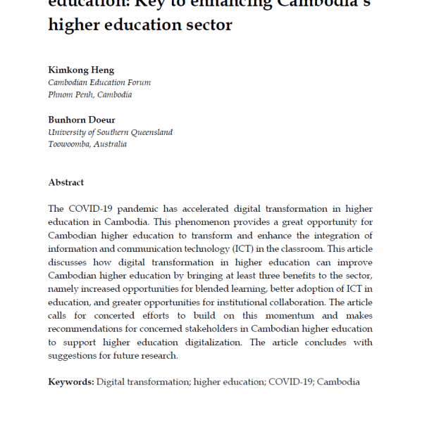 by CambodianEducationForum Posted on June 3, 2022December 21, 2023 Digital transformation in higher education: Key to enhancing Cambodia’s higher education sector Read More