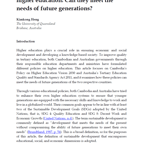 by CambodianEducationForum Posted on January 12, 2021December 20, 2023 Cambodia and Australia’s Policies on Higher Education: Can They Meet the Needs of Future Generations? Read More