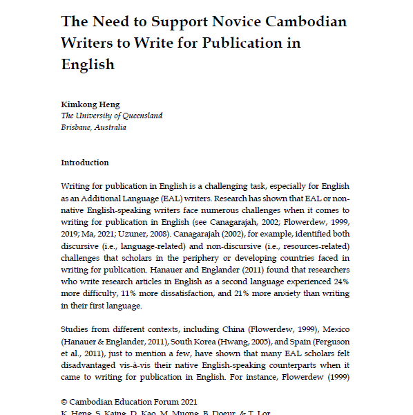 by CambodianEducationForum Posted on December 15, 2021February 11, 2022 The Need to Support Novice Cambodian Writers to Write for Publication in English Read More